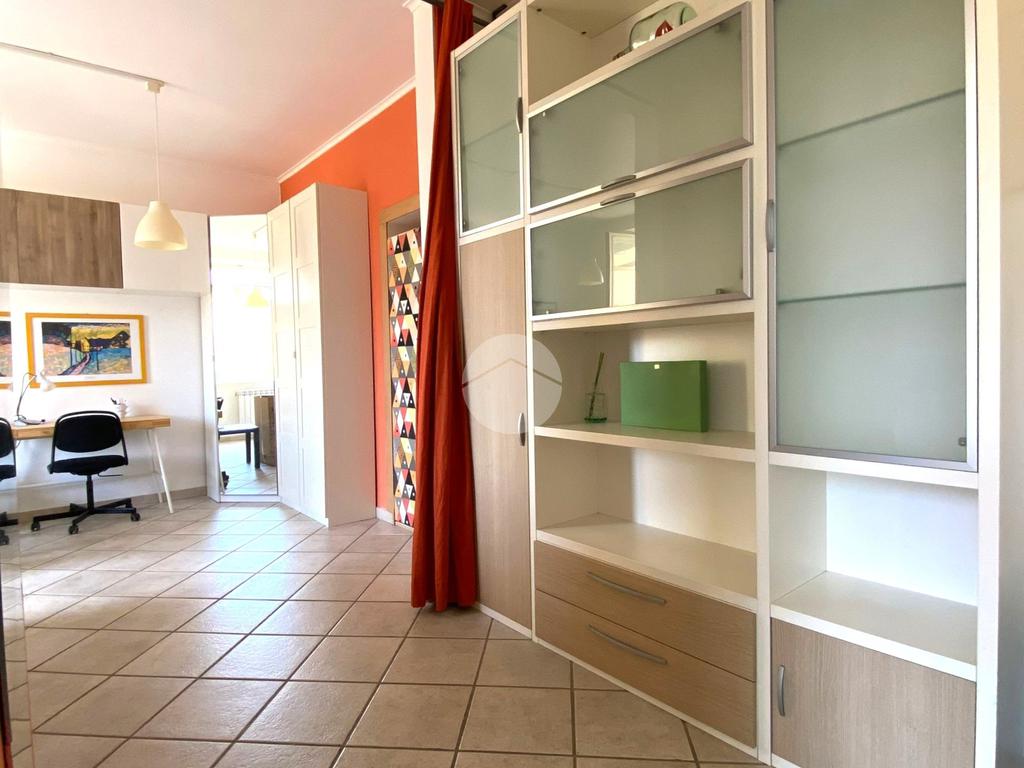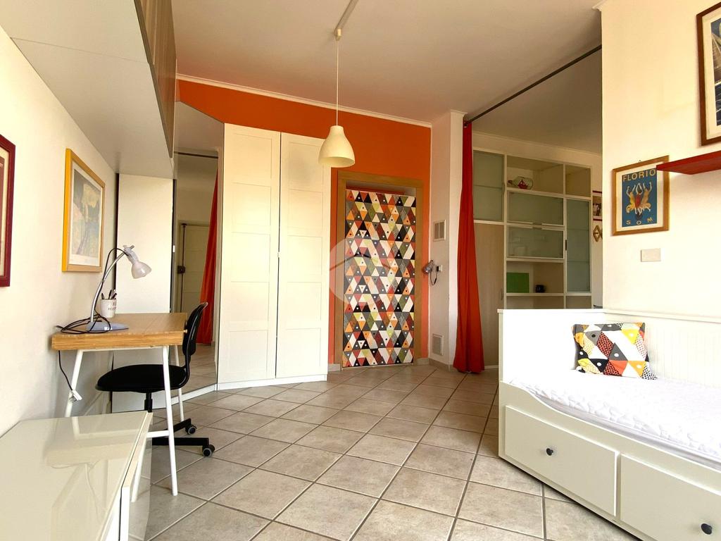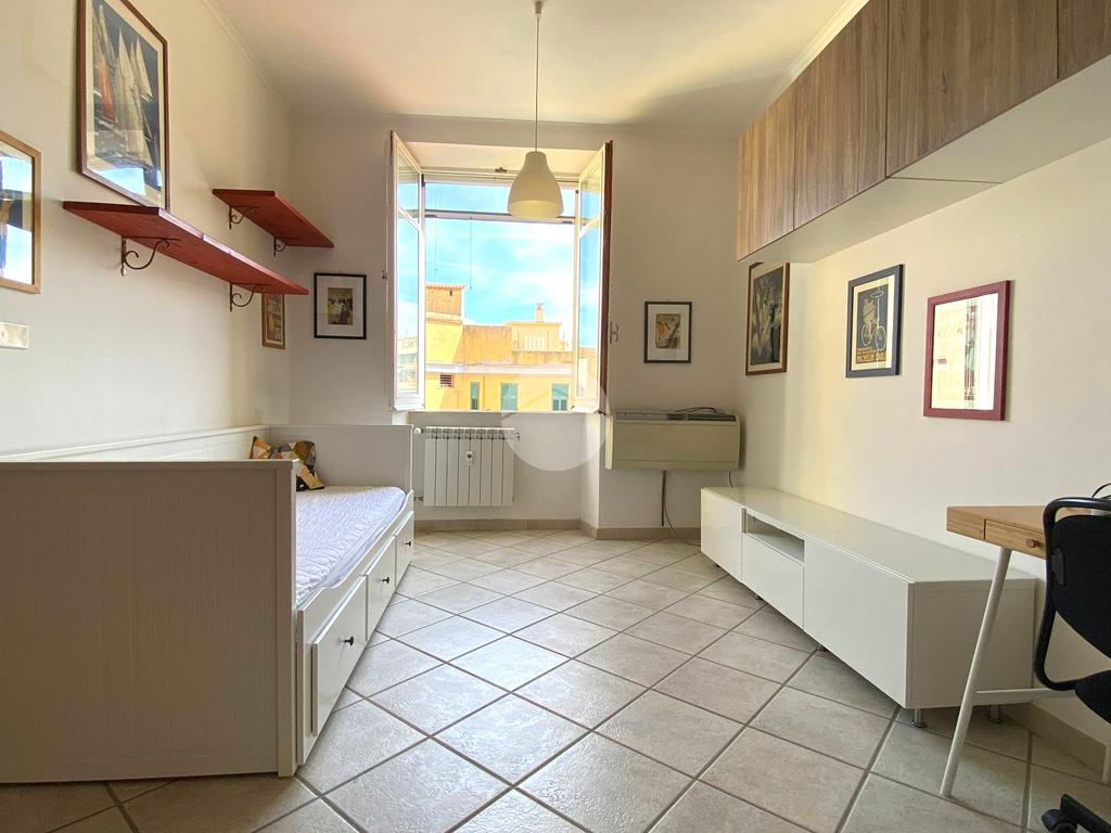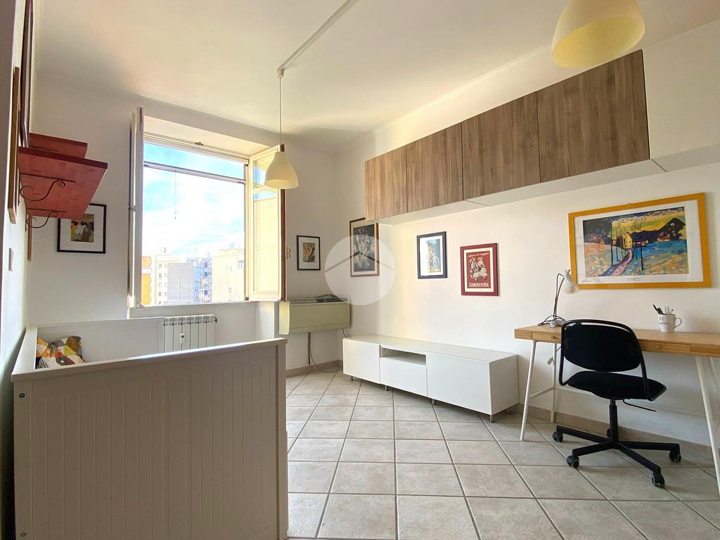 L’affaccio è silenzioso e il piano alto rende l’appartamento particolarmente luminoso.