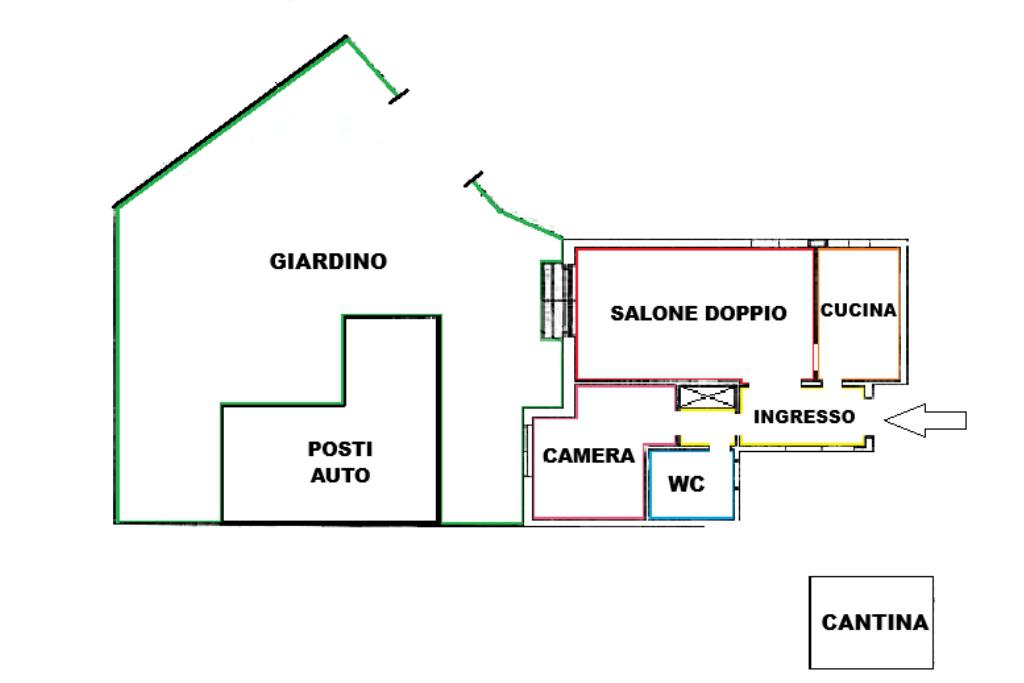 - Salone doppio con accesso diretto al giardino, ideale per momenti di relax, convivialità e per ricevere ospiti