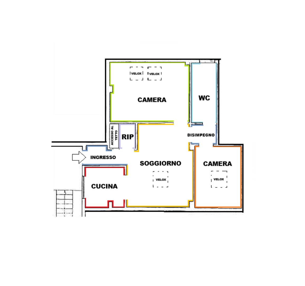 - Luminoso soggiorno con accesso diretto alla cucina;
