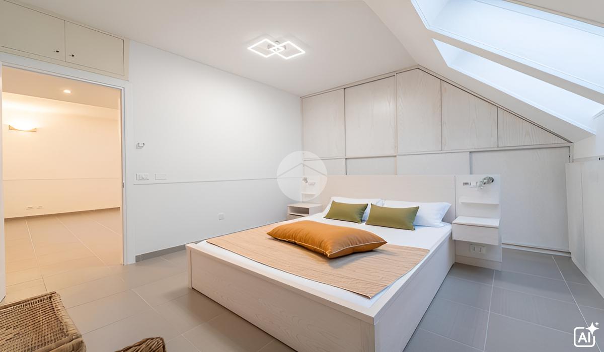 Ogni ambiente è stato curato nei minimi dettagli, con materiali di alta qualità e soluzioni funzionali. Gli infissi da tetto elettrici, con serrande automatizzate, garantiscono un eccellente isolamento termico e acustico, oltre a un’abbondante luce naturale e la possibilità di godere di una suggestiva vista sul cielo stellato.