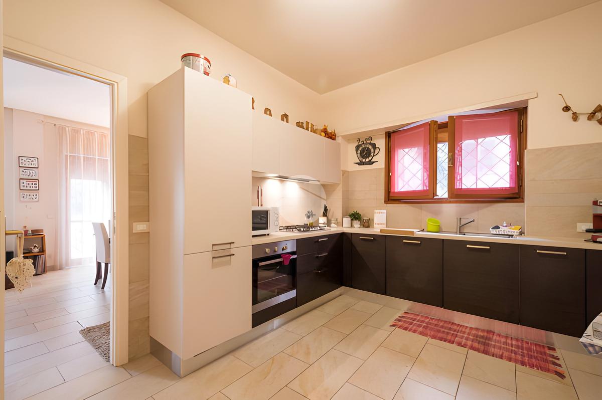 L’ingresso introduce a un ampio salone doppio, luminoso e accogliente, perfetto per momenti di relax e convivialità. La grande cucina abitabile, separata e funzionale, è ideale per chi ama vivere la casa e condividere pranzi e cene in famiglia.