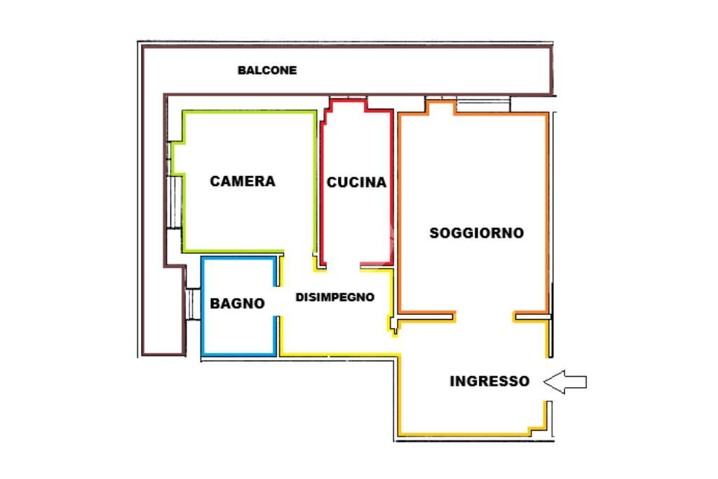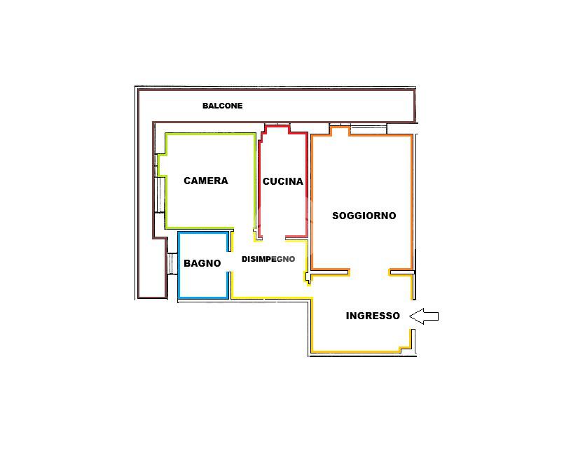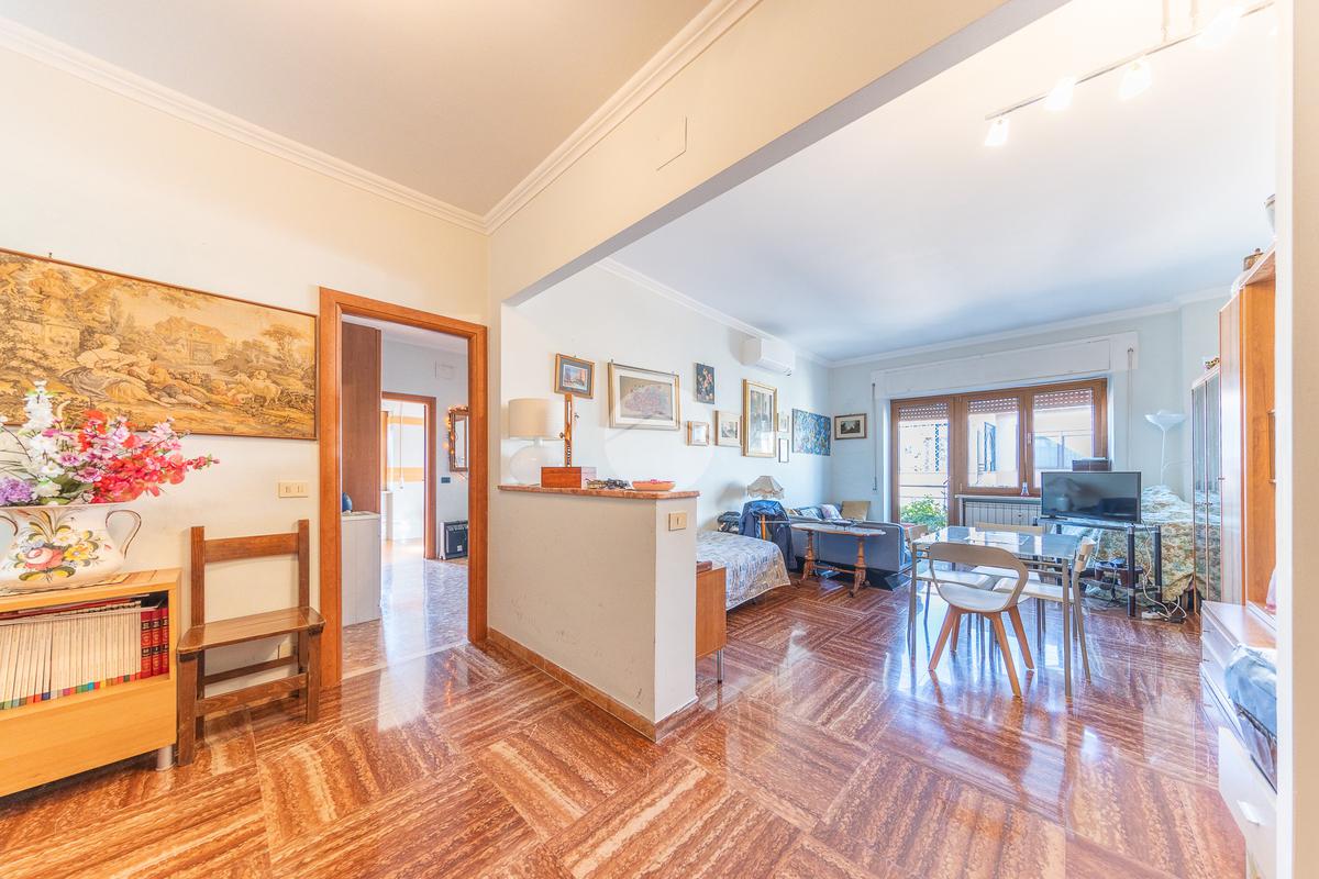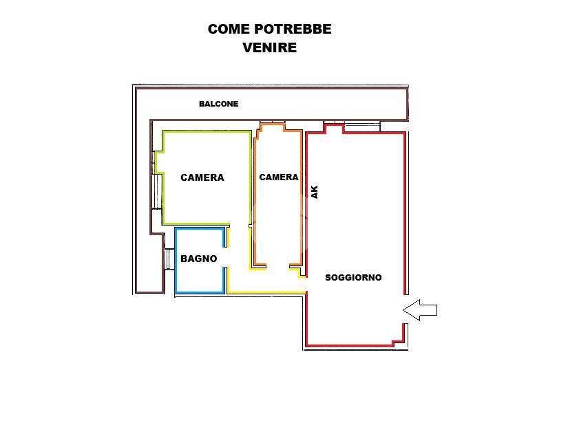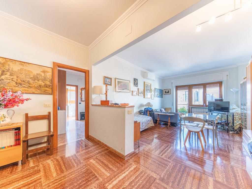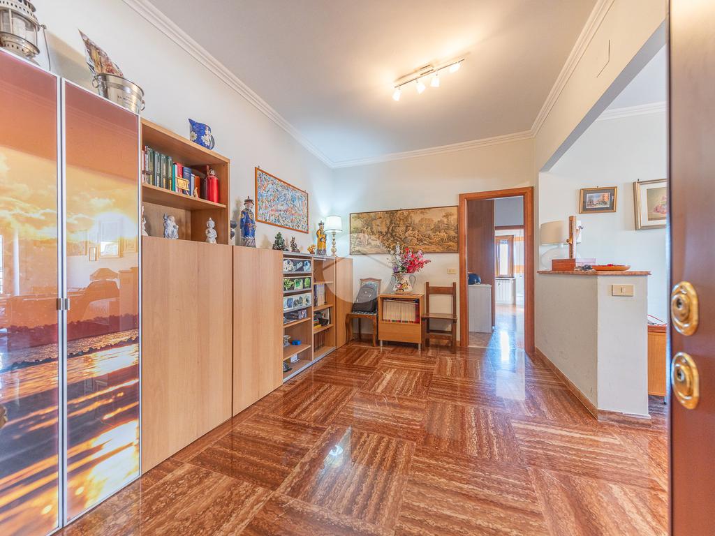 Attualmente l’appartamento è composto da: Salone all’ingresso, Grande disimpegno, Cucina abitabile, Camera matrimoniale e Bagno