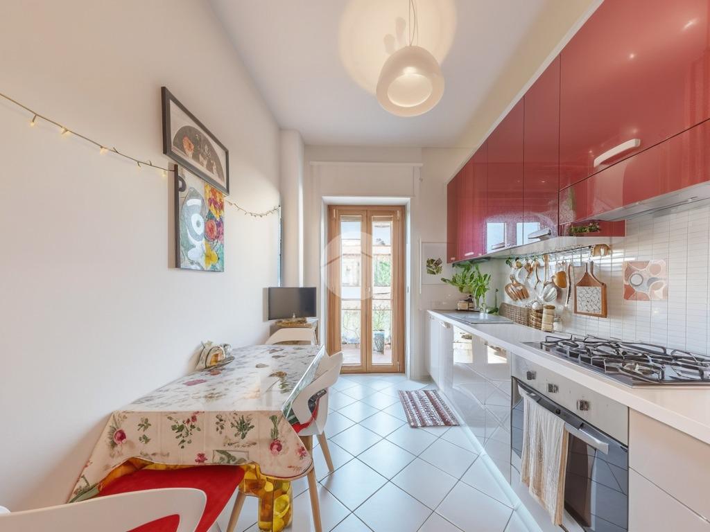 L’immobile, posto al quarto piano, si distingue per la sua eccezionale luminosità e per l’ottima esposizione. Un ampio balcone perimetrale, che si sviluppa su due lati dell’abitazione, è accessibile da tutti gli ambienti, garantendo luce naturale costante accessibilità degli spazi esterni.
