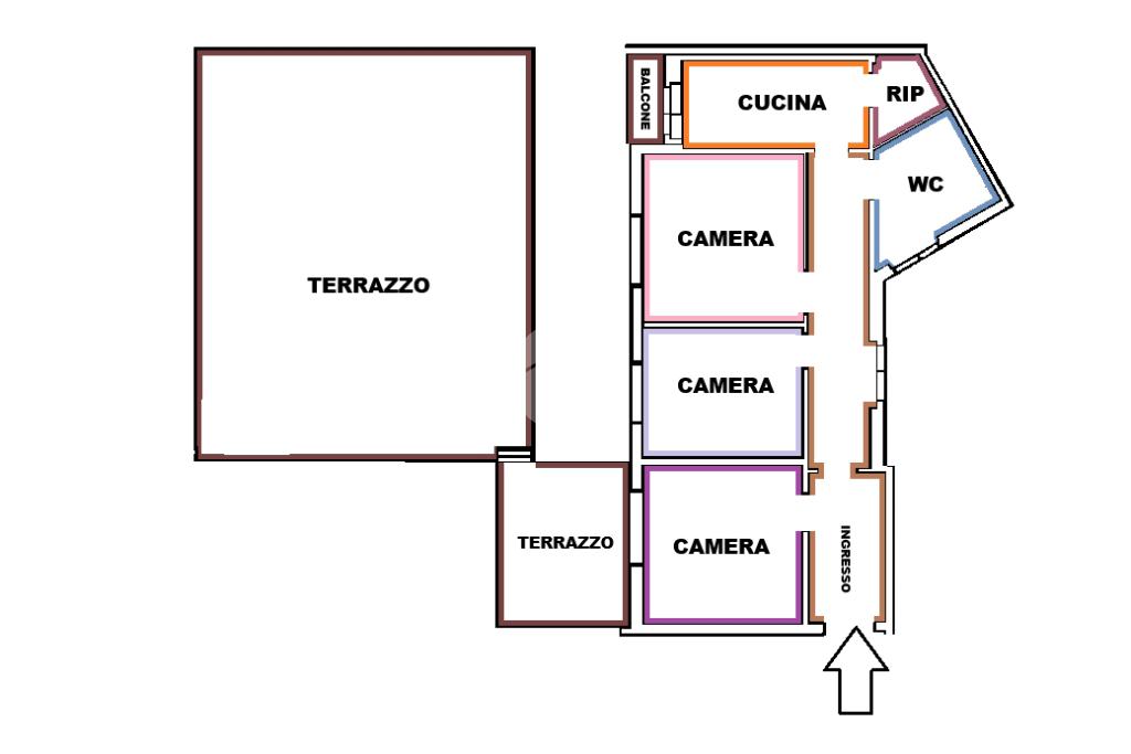 La distribuzione degli ambienti permette diverse possibilità di riorganizzazione degli spazi interni, rendendo l’appartamento adatto sia come abitazione principale sia come investimento.